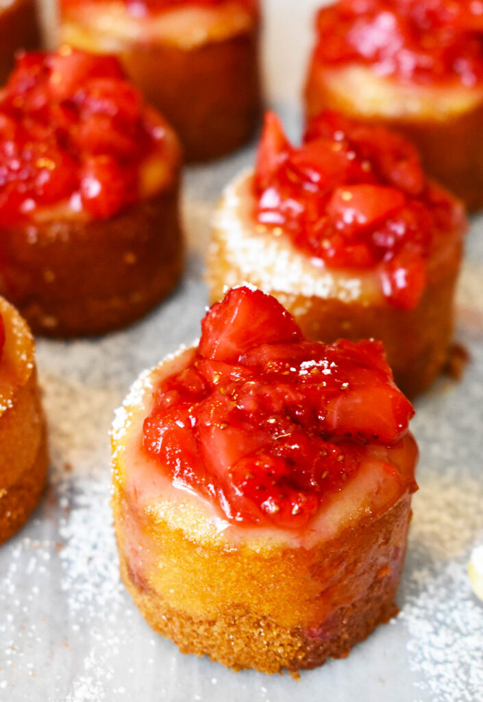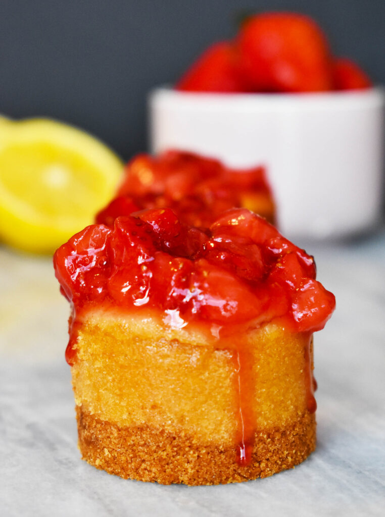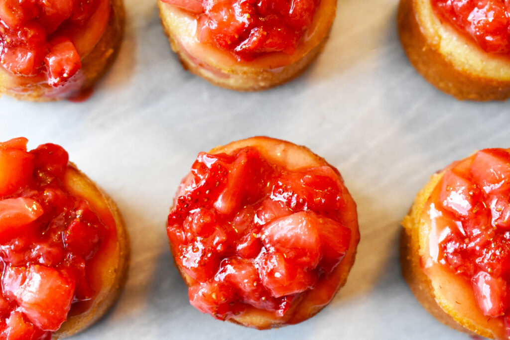 - Spoon the strawberries evenly into each mini cheesecake. Enjoy!